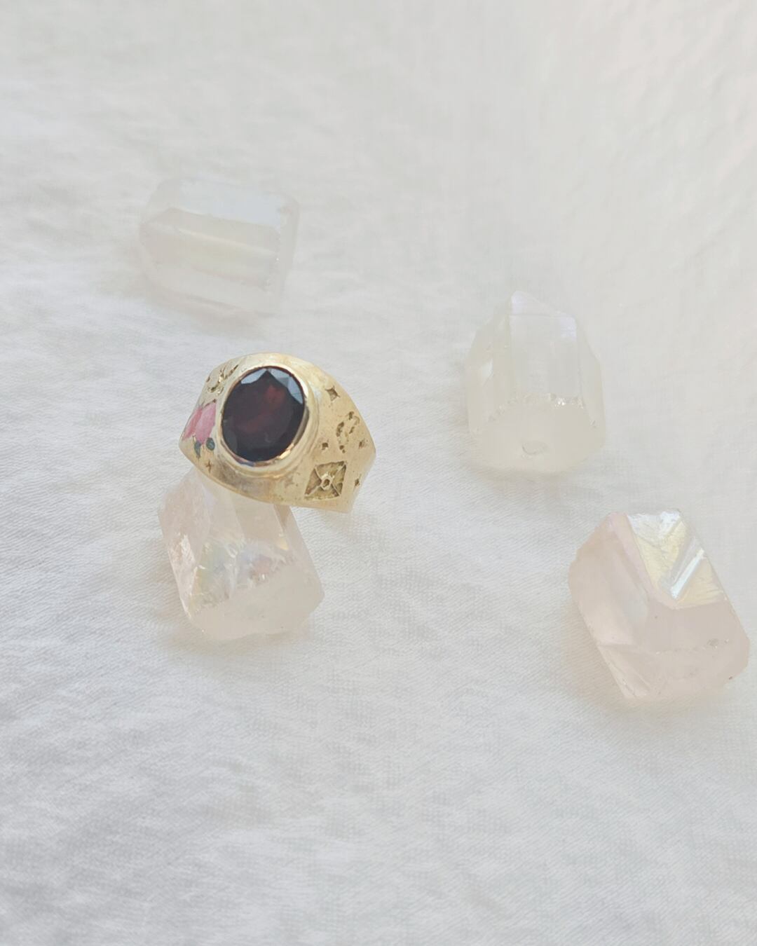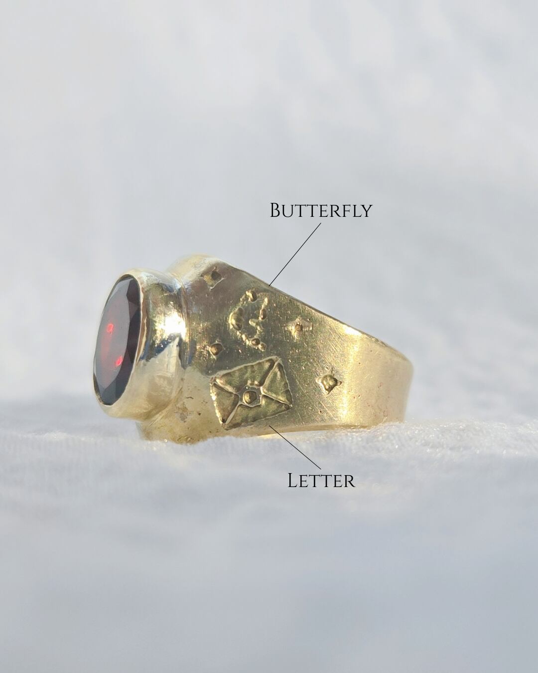 ・真鍮は、使い込むほどに深い飴色へと変化していく素材です。アートの「不変の美しさ」と、素材の「移ろう味わい」。そのコントラストを楽しみながら、あなた自身の歴史をリングに刻んでください。